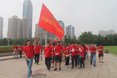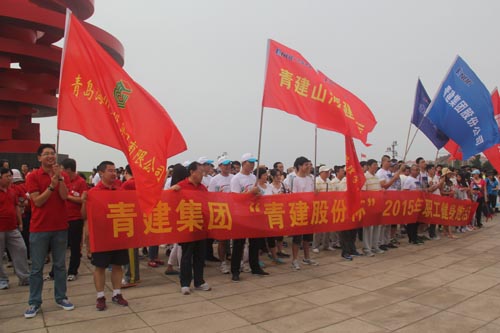 青建集團(tuán) “青建股份杯” 2015年職工健身跑(健步行)活動(dòng)6月27日(周六)上午9:00在五四廣場“五月的風(fēng)”雕塑下舉行開幕式,共有來自青建系統(tǒng)各單位的500余名員工踴躍參加了本次活動(dòng),青建集團(tuán)執(zhí)行總裁朱廣君致辭并為方隊(duì)鳴哨開跑。